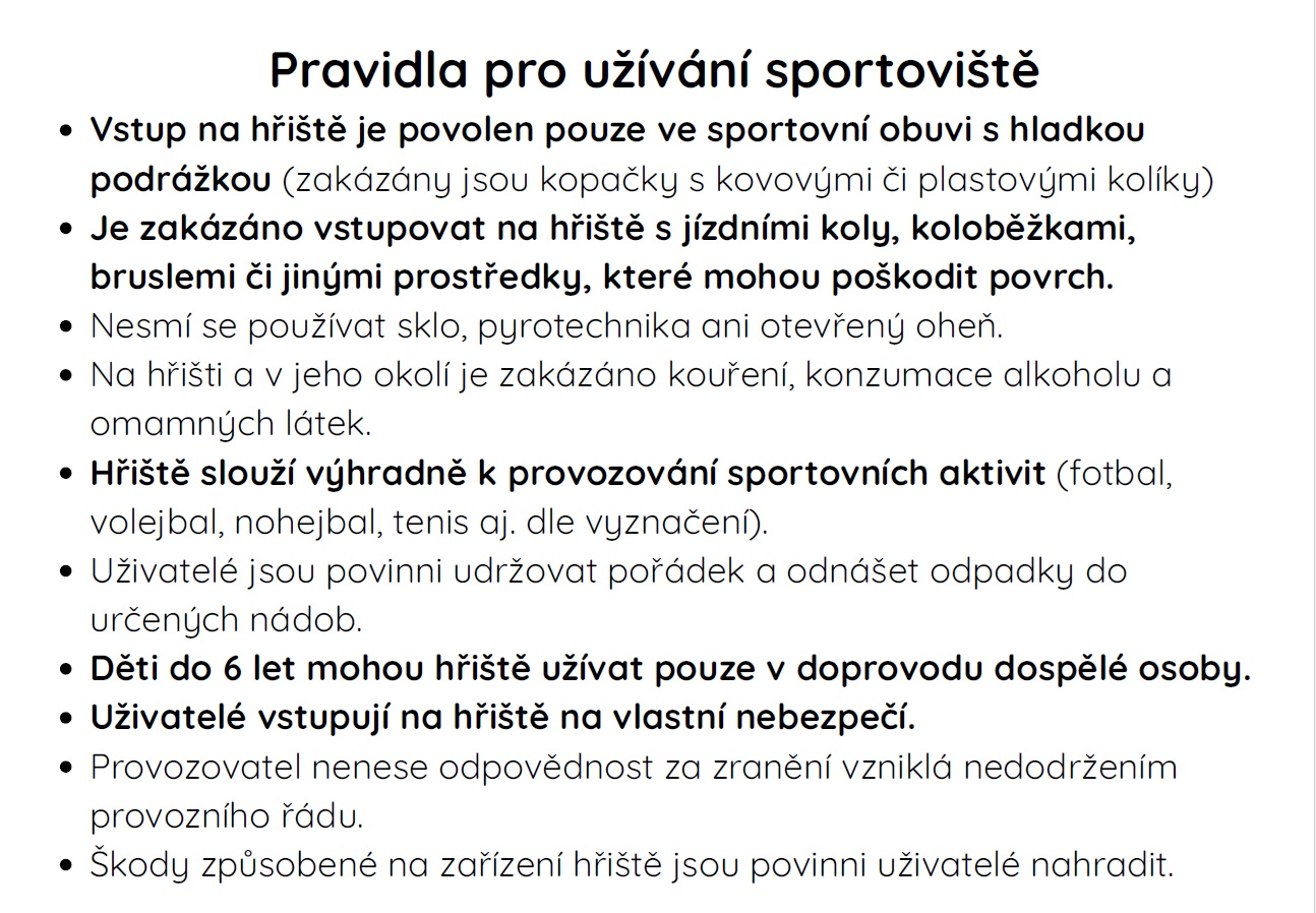 Hřiště bude otevřeno pro veřejnost od 1.9.2025 a jeho využití nebude zpoplatněno.